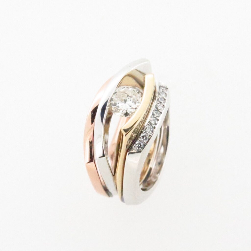 This design is a contemporary approach to a solitaire engagement ring. I wanted to get away from what the mainstream jewellery industry is offering up to the public. It is not just a “holder” for a Diamond but a unique design bringing a focus to the Diamond.