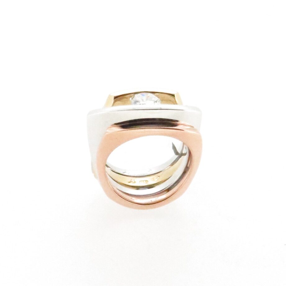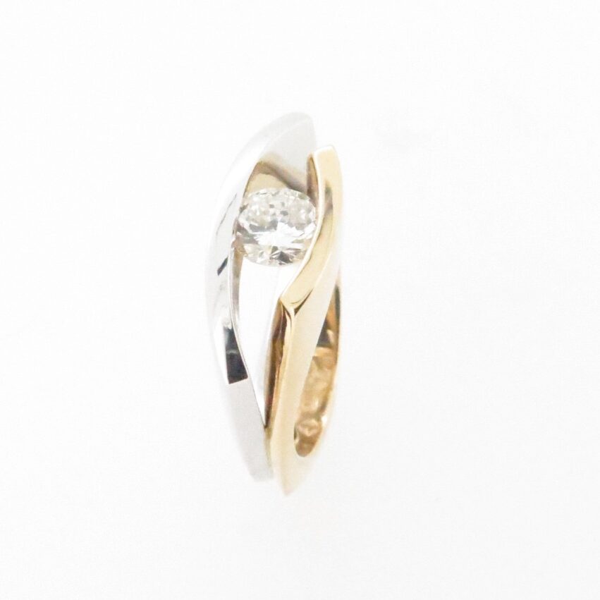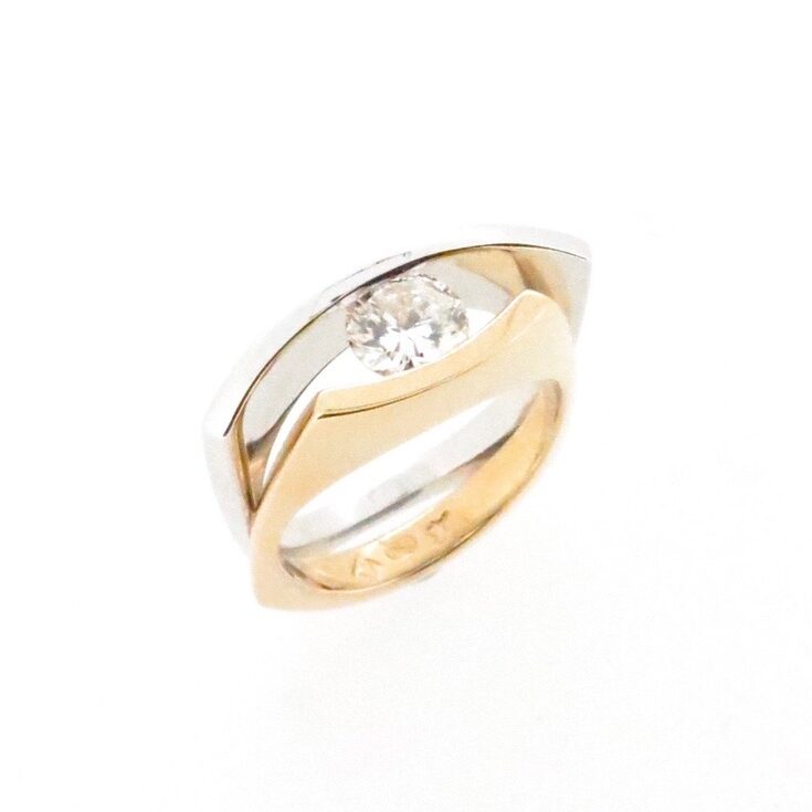 18ct yellow and white gold handmade “Curved wall” Ring. Tension set with one round brilliant cut Diamond.